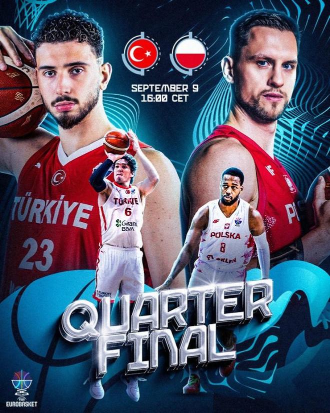 男篮欧锦赛-申京19+12+10 土耳其7人上双击败波兰杀入四强