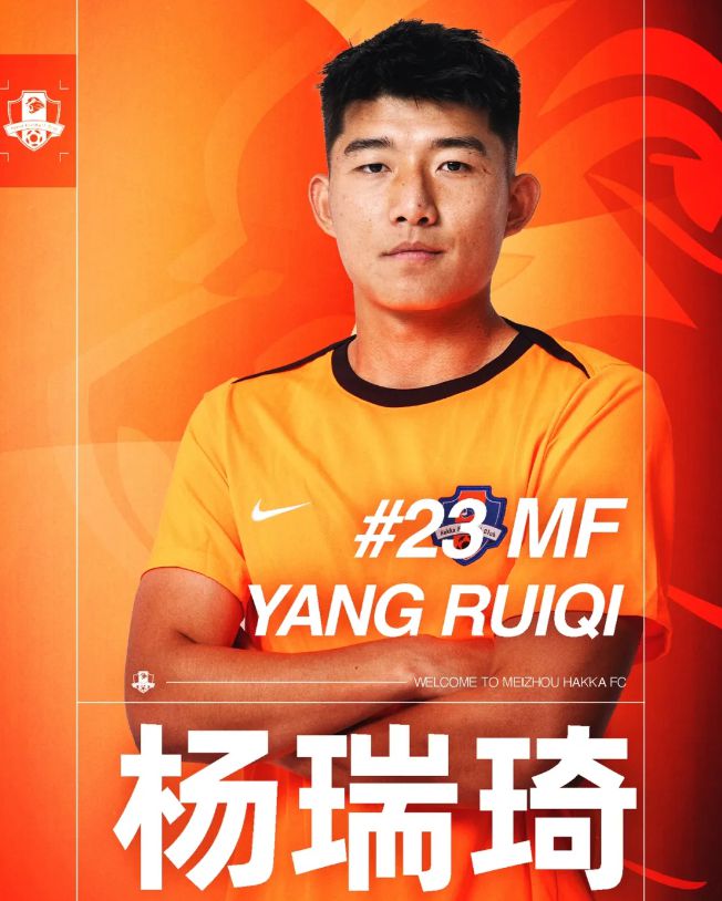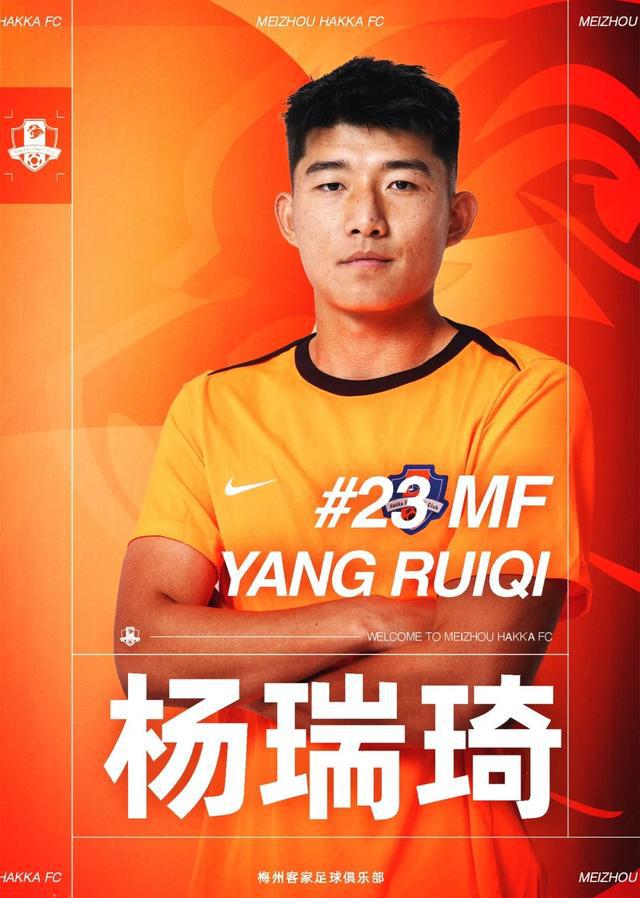 梅州客家官方:泰山队中卫杨瑞琦租借加盟球队,将身披23号球衣